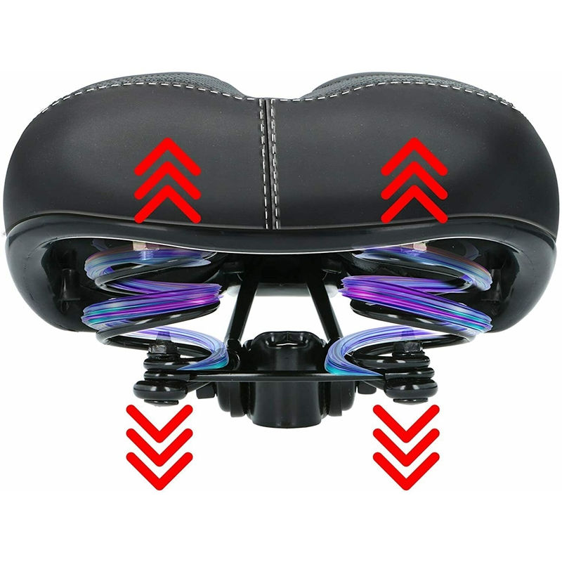 Zawieszenie siodełka redukuje wstrząsy i amortyzuje podczas jazdy na rowerze. Grube sprężyny zapewniają bezpieczeństwo oraz zwiększają stabilność.