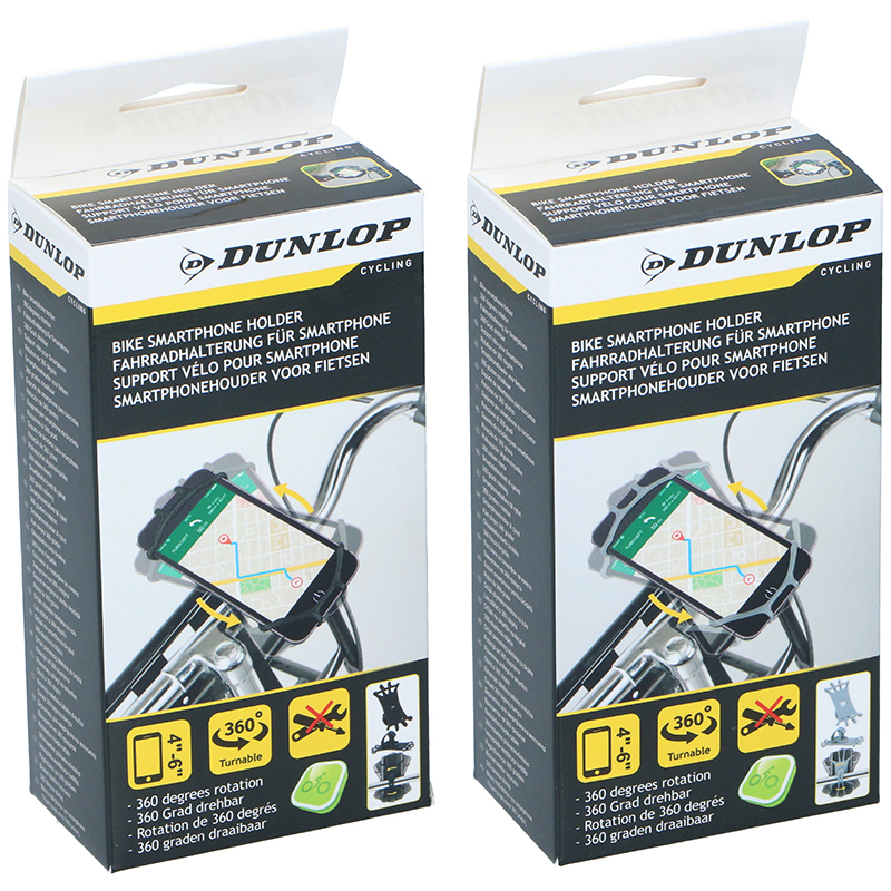 Dunlop® universal phone holder for stable attachment to bike handlebars.