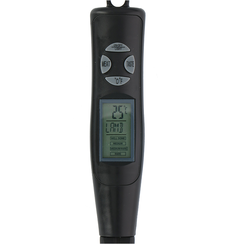 Sie können den Wert auf dem beleuchteten Bildschirm ablesen. Ein kleines LED-Licht leuchtet auf das Fleisch, so dass man auch bei schwachem Licht leicht überprüfen kann, ob das Fleisch fertig ist. Dies ist vor allem beim Grillen am Abend nützlich.