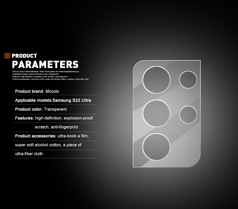| Nome dell'elemento | Mocolo Silk Camera Lens Glass - Protective Glass for Samsung Galaxy S22 Ultra camera lens |