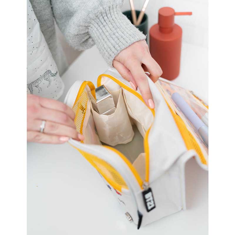 Ponadto, dzięki oddzielnym kieszonkom zapinanym na suwaki, ułatwia zachowanie porządku a kosmetyki i akcesoria będą na swoim miejscu i oddzielone. Po rozłożeniu zmienia się w wygodny organizer gdzie każdy kosmetyk jest „pod ręką”.