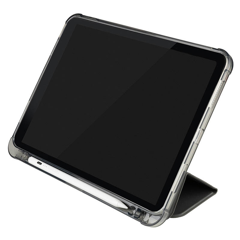 Antywstrząsowa tylna powłoka wykonana jest z przezroczystego, podwójnie wtryskiwanego poliwęglanu, który dodatkowo posiada ramkę z TPU dla łatwiejszego montażu i demontażu iPada.