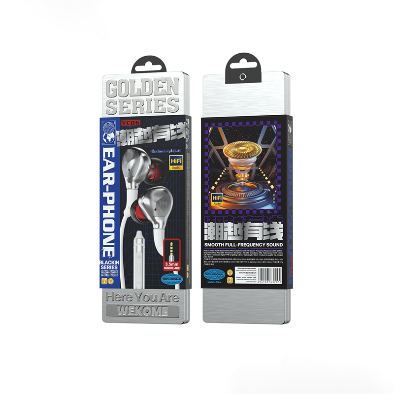 Słuchawki WEKOME YC06 Blackin Series zachwycają swoją budową i precyzją wykonania. Ich ergonomiczna i designerska konstrukcja sprawia, że są wygodne i komfortowe w noszeniu, jednocześnie nadając im unikalny i jedyny w swoim rodzaju wygląd. Wbudowany pilot ułatwia sterowanie głośnością bez potrzeby korzystania z telefonu.