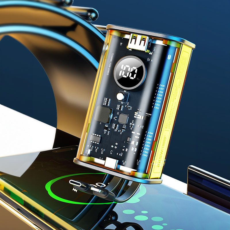 The WEKOME WP-345 Vanguard Series power bank is an extremely stylish and durable design that allows you to use it comfortably and safely in any conditions. You can connect several devices to it at the same time and not worry about their safety, the advanced protection system effectively prevents their damage. The built-in LED display makes the product easy to use, and thanks to its compact size and light weight, you can take it almost anywhere. Product features: - Material: ABS+PC - Battery type: Lithium-polymer - Battery capacity: 10000 mAh - Rated capacity: 5200 mAh - Input voltage: USB-C 5V/3A 9V/2A 12V/1.5A - Output voltage: USB: DC4.5V/5A 5V/3A 9V/2A 12V/1.5A - Output voltage: USB-C cable: 4.5V-5A/5V-3A/9V-2A/12v-1, 5A - Output voltage: Lightning cable: DC5V/3A 9V/2.22A 12V/1.67A - Power: PD 20W+ QC 22.5W Super fast charging - Digital LED display - Weight: 280g