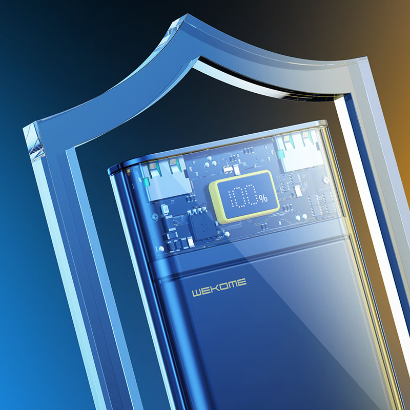El power bank WEKOME WP-321 Vanguard Series tiene un diseno extremadamente elegante y duradero que le permite utilizarlo de forma cómoda y segura en cualquier condición.