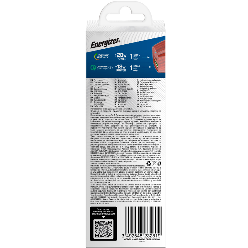 | Nazwa prod. | Energizer Ultimate - Ładowarka samochodowa USB-C & USB-A 38W PD + QC3.0 (Walnut) |
