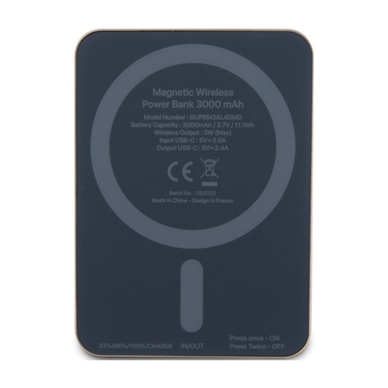 | Nombre del prod. | Guess 4G Strassed Metal Logo MagSafe - Power Bank inductiva 3000 mAh 5W MagSafe (oro) |