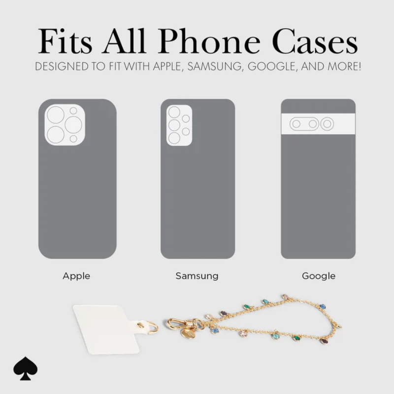 The phone lanyard from Kate Spade New York is the perfect addition to your case. The subtle pattern of crystals will make your smartphone look more stylish, plus you'll be able to carry it with you at all times. The precise design of the lanyard is compatible with classic Apple phone cases and Android smartphones. The attached accessory does not block the charging/sync data port during everyday use. Product features: - Subtle crystal pattern - Perfect fit to the device - Functional and stylish - Does not block the charging/data sync port - Compatible with Apple phone cases and Android smartphones