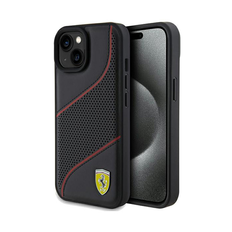 | Name des Erzeugnisses. | Ferrari Perforated Waves Metal Logo - Hülle für iPhone 15 (Schwarz) |