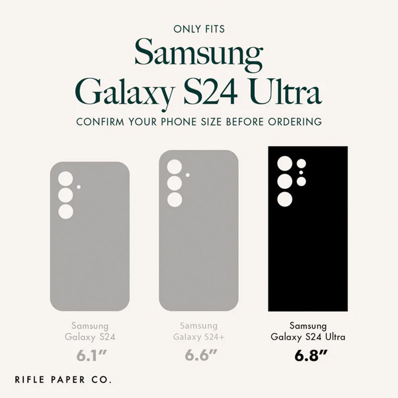 Designer case for the Samsung Galaxy S24 Ultra with original Rifle Paper graphics with a floral motif. The surface of the case has also been treated against bacteria, so that it remains clean at all times, does not yellow and is pleasant to use.