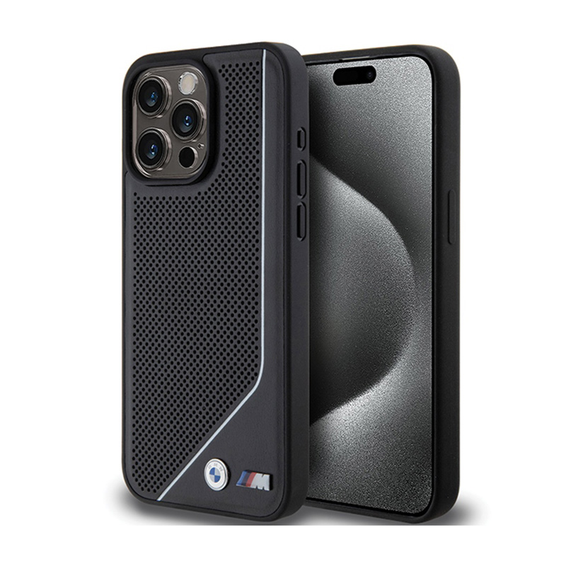 BMW Perforated Twisted Line MagSafe - Tasche für iPhone 15 Pro (Schwarz)