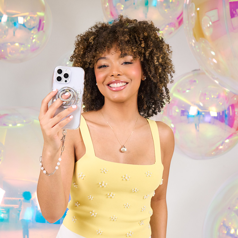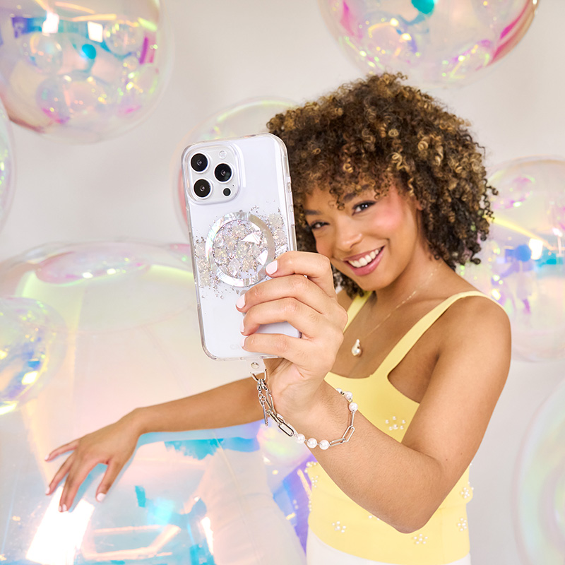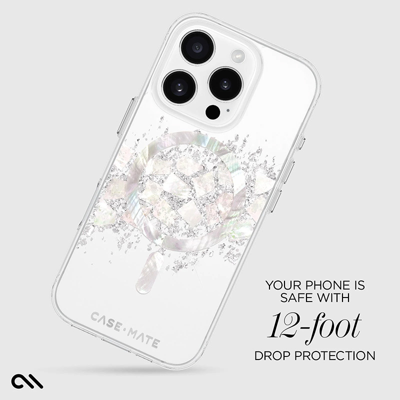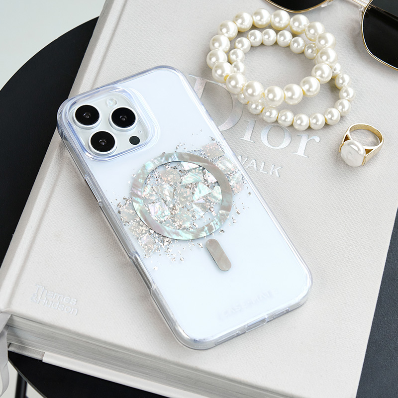 Pretty in pearls— the Touch of Pearl MagSafe Phone Case for the iPhone 16 Pro features genuine Mother of Pearl elements with an irresistible pearlescent design. We know how much you love your phone, so feel confident knowing it’s safe with 12-foot drop protection while strong built-in magnets allow for easy MagSafe accessorizing and charging.