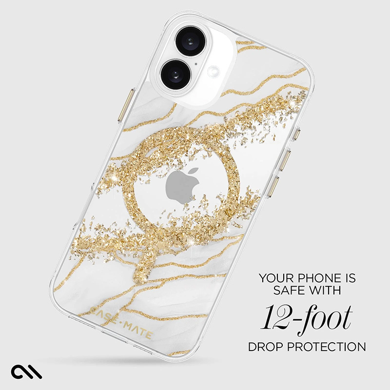 Keep it classy with the Karat Granite MagSafe Phone Case for the iPhone 16 Plus. Featuring white granite and gold accents for a modern twist on this timeless look. We know how much you love your phone, so feel confident knowing it’s safe with 12-foot drop protection while strong built-in magnets allow for easy MagSafe accessorizing and charging.