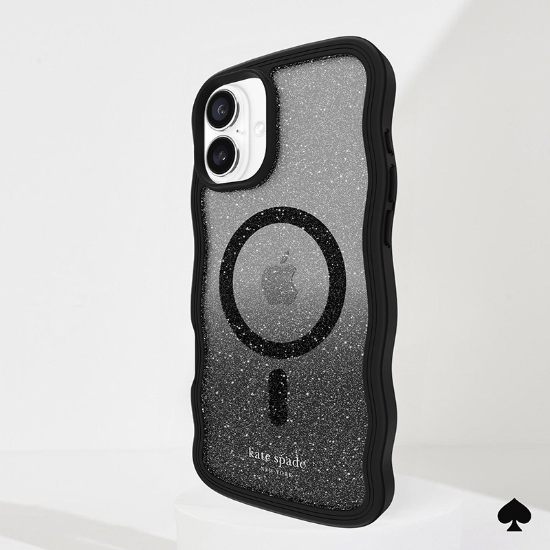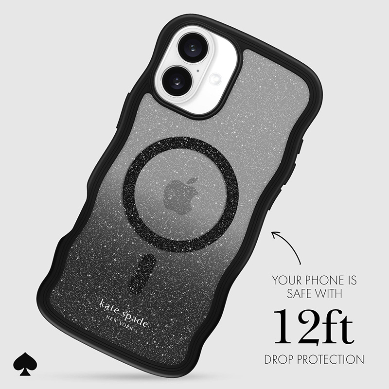 !La funda de teléfono Kate spade new york Wavy MagSafe agregará un toque divertido a tus selfies en el espejo gracias a su diseno ondulado único y ombré negro brillante! Esta funda para teléfono está hecha para mantenerse al día con su lista de tareas diarias con protección contra caídas de 10 pies, mientras que los imanes incorporados le permiten cargar y recargar de forma inalámbrica en poco tiempo.