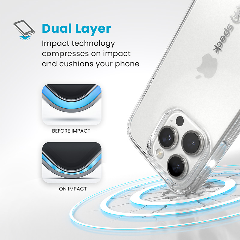 Speck Gemshell is a transparent case equipped with an innovative dual-layer frame to protect against impacts or drops. It's all thanks to two layers: an outer layer made of polycarbonate, which disperses the force of impact, and an inner layer that absorbs shocks. In this way, the case effectively secures the phone and protects it from damage.