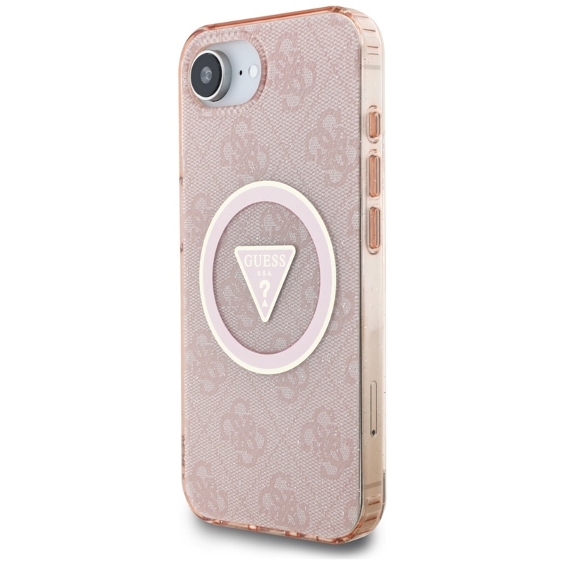 Guess IML Metal Glitter 4G Circle Triangle MagSafe - Etui do iPhone 16e (różowy)