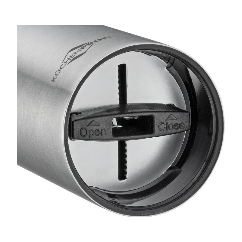 Name des Erzeugnisses.Küchenprofi Charlotte – Muskatmühle mit Kurbel aus Edelstahl 15×4,5 cm