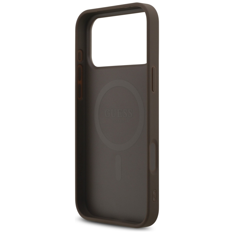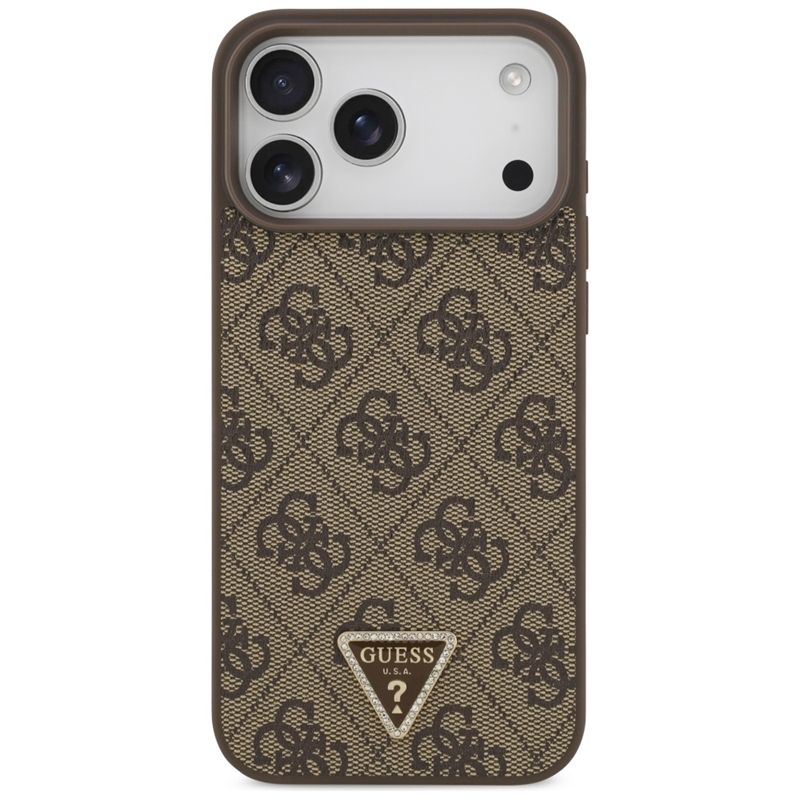 | Name des Erzeugnisses. | Guess Leather 4G Triangle Strass MagSafe - Hülle iPhone 17 Pro Max (braun) |