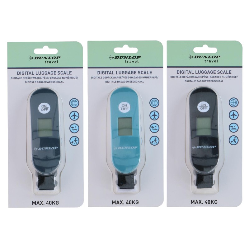 Die Dunlop-Waage bietet genaue Messungen von bis zu 40 kg, und die leicht ablesbare Digitalanzeige macht es einfach, das Ergebnis auch bei schlechten Lichtverhältnissen abzulesen. Es verfügt über einen strapazierfähigen Riemen, der am Koffergriff befestigt werden kann, sodass Sie jede Art von Gepäck schnell und bequem wiegen können.